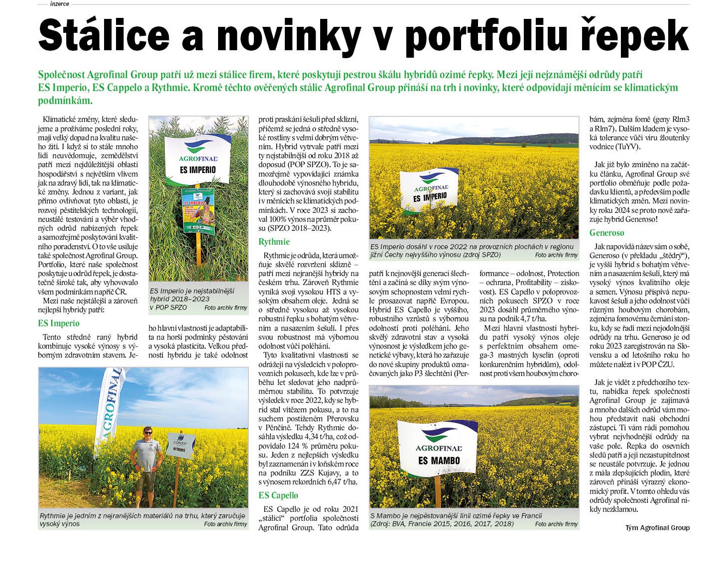 Společnost Agrofinal Group patří už mezi stálice firem, které poskytují pestrou škálu hybridů ozimé řepky. Mezi její nejznámější odrůdy patří ES Imperio, ES Cappelo a Rythmie. Kromě těchto ověřených stálic Agrofinal Group přináší na trh i novinky, které odpovídají měnícím se klimatickým podmínkám.