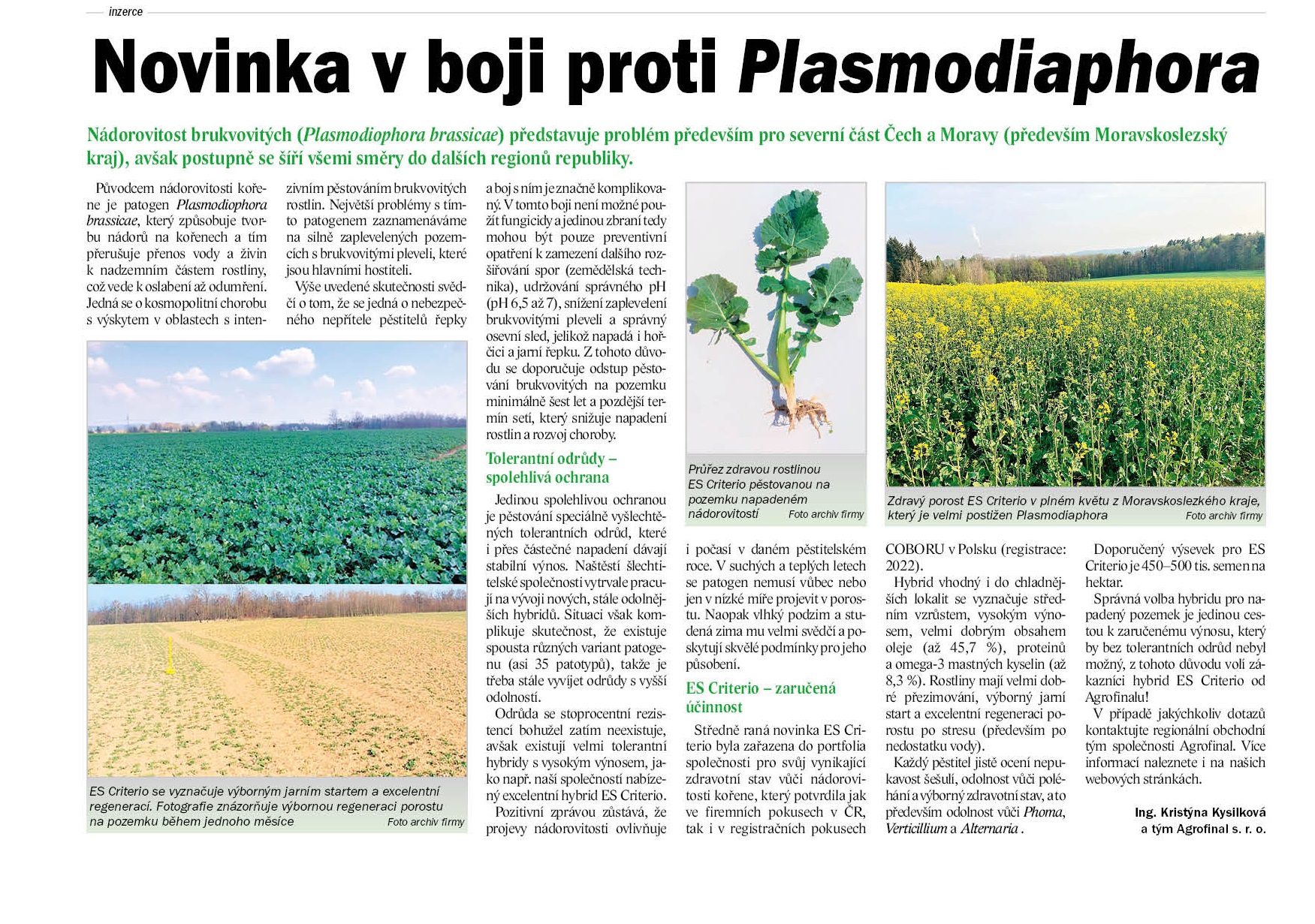 Správná volba hybridu pro napadený pozemek je jedinou cestou k zaručenému výnosu, který by bez tolerantních odrůd nebyl možný, z tohoto důvodu volí zákazníci hybrid ES Criterio od Agrofinalu!