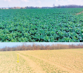ES Criterio se vyznačuje výborným jarním startem a excelentní regenerací. Fotografie znázorňuje výbornou regeneraci porostu na pozemku během jednoho měsíce