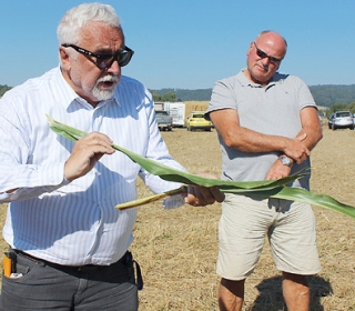 Porostům kukuřice se z hlediska výskytu chorob a škůdců věnoval vzácný host odborné akce Ing. Karel Říha, který ochotně zodpověděl také celou řadu dotazů od návštěvníků. Zdravotní stav prezentovaných hybridů ohodnotil jako velmi dobrý. Obsev pokusů ale poskytl možnost určit známé i méně známé choroby a škůdce této plodiny.